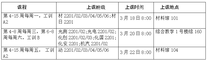 通知公告|2023-2024第二学期工程训练概论课上课地点通知(4周开课)