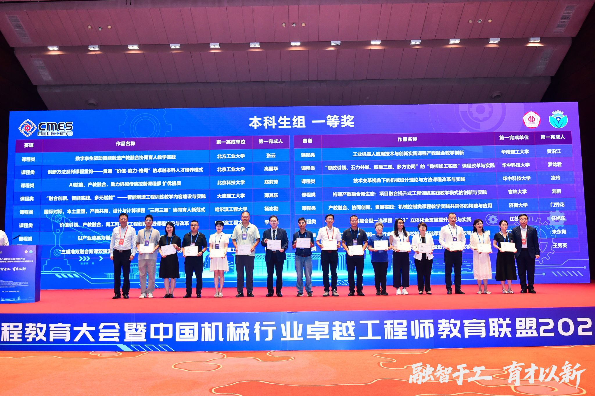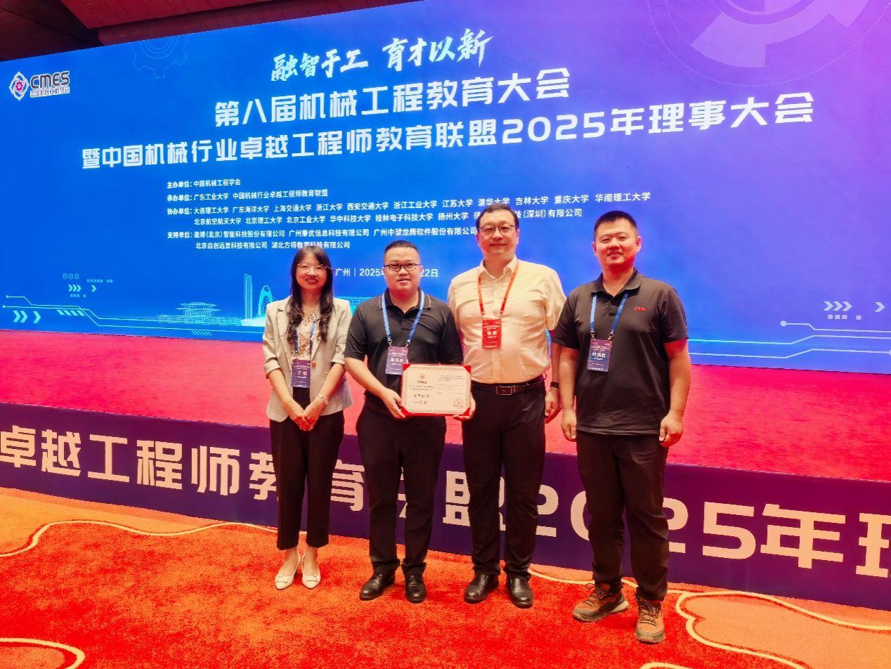 2025年9月19日-21日,在广州召开的第二届“科德杯”中国机械行业产教融合教育教学创新大赛全国总决赛上,中心老师薄其乐、于欣、叶洪歆、刘新等代表项目团队以“融合创新、智能实践、多元赋能”——智能制造工程训练教学内容建设与实践为题目,围绕项目背景、解决问题的举措、项目创新点和产教融合成效及推广展开汇报,获本科生课程组一等奖。