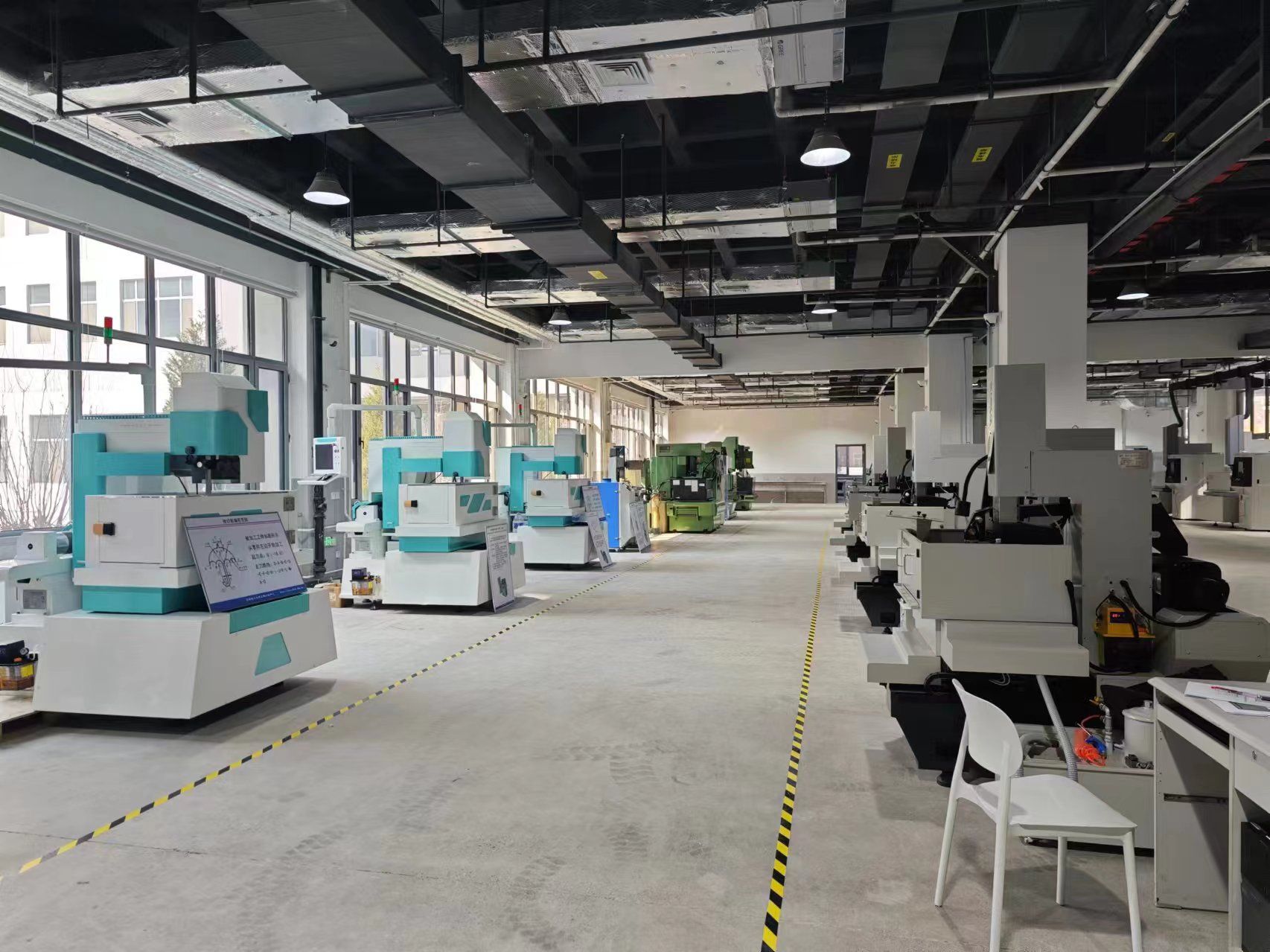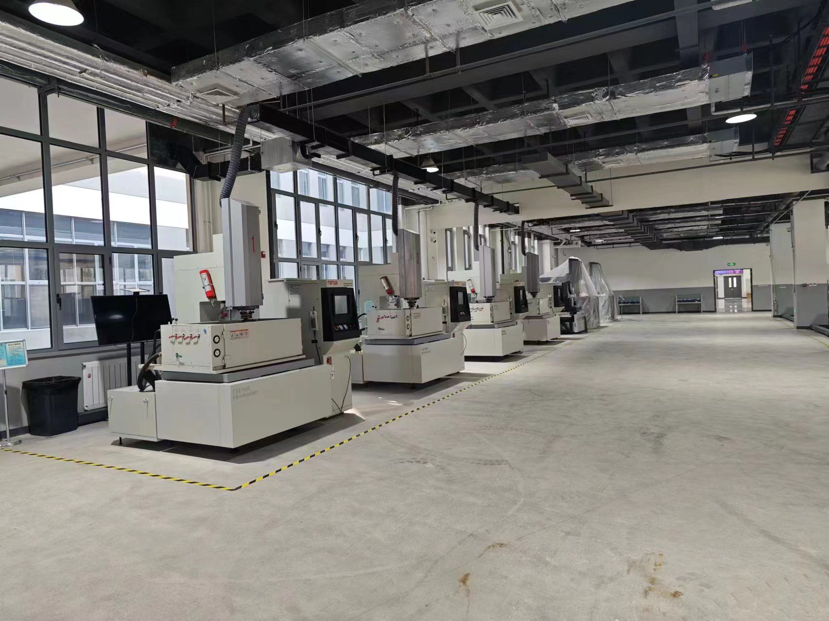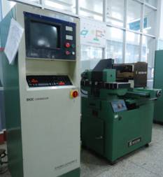 放电加工是利用浸在工作液中的两极间脉冲放电时产生的电蚀作用蚀除导电材料的特种加工方法,又称电火花加工(简称EDM)。根据工具电极形式及其与工件之间相对运动特征的不同,它又包括电火花成形加工、电火花线切割加工和电火花高速小孔加工实训等。实训车间配备有北京凝华NH430F精密电火花成型机4台、群基LN-80大型火花机两台、日本进口A50R电火花成型机1台、日本进口C32数控电火花成型机1台;日本进口AP200超高精度线切割加工机1台、日本进口A530D高精度线切割加工机1台、北京凝华NH400精密线切割机4台、群基精密线切割机床QJ500三台、电火花高速小孔加工机2台,设备总价值近800万元。