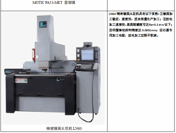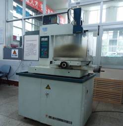 图5 K1C高速小孔加工机 | 型号:K1C X/Y/Z行程(mm):200*300*300 工作台尺寸(mm):250*350 工作台行程(mm): 功率Kw: 电极丝(铜丝)mm:φ0.25、0.3、0.5、1.0、2.0、3.0 精度mm: 粗糙度(um): 最大工件质量(kg):100 机床外尺寸mm:810*870*2015 生产厂家:日本沙迪克公司 出厂年份:1998年9月 |