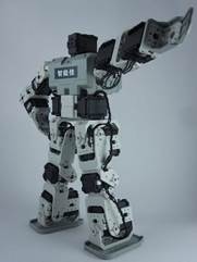 图4 类人机器人 | 型号:BIOLOID高级版 重量:53.5g 尺寸:32mm*50.1mm*40mm 最小控制角:0.29deg; 齿轮比:254 : 1 最大扭力:15kgf.cm (at 12V, 1.5A) 动作模式:①关节模式(0deg;~300deg;) ②车轮模式(无限旋转) 适用温度:-5℃ ~+85℃ 适用电压:9V~12V 通信速度:7843bps~1Mbps 反馈信息:位置、温度、负载、输入电压等 生产厂家:北京智能佳科技有限公司 出厂年份:2008年8月 |