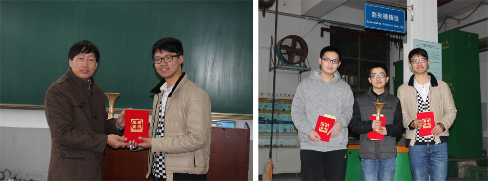 为鼓励更多的学生参赛,2015年11月23日,工程训练中心专门为本次获奖的同学进行了颁奖,颁发了奖状、奖杯及奖金。