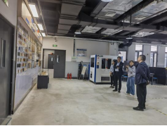 上午 9 时,张恒旭主任一行四人抵达工程训练中心后,对智能制造、工业机器人、激光、测量、复合材料、3D 打印、材料成型、电加工等实训区域进行了参观。在参观过程中,副主任张红哲向张恒旭主任一行细致地介绍了工训中心的建设规模、资源环境、课程设置、师资队伍、教学运行以及学生实训作品考核等情况。